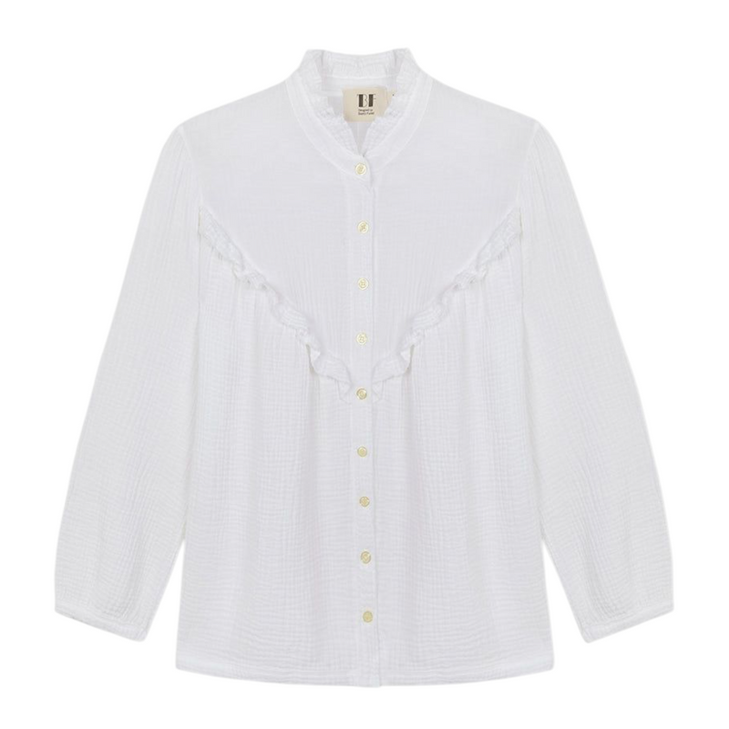 La camicia Duna incarna l’essenza dello stile raffinato e femminile, realizzata in cotone di alta qualità che garantisce leggerezza e comfort per tutto il giorno. Il taglio è morbido ma studiato per valorizzare la silhouette, con uno scollo rotondo ornato da un delicato volant che aggiunge un tocco romantico. Il modello presenta un doppio canesù sulla parte anteriore e posteriore per una vestibilità elegante e uniforme, mentre il sistema di chiusura è affidato a bottoni discreti che scorrono su una piega centrale. I polsini sono caratterizzati da pieghe sottili che creano volume controllato nei polsi senza impattare sul tono complessivo della stoffa. Realizzata artigianalmente in Spagna, è pensata per durare nel tempo grazie all’uso di materiali naturali e finiture curate. Questo capo è perfetto per essere abbinato a look casual sofisticati o alle tue mise da lavoro, conferendo un’eleganza discreta ma distintiva.