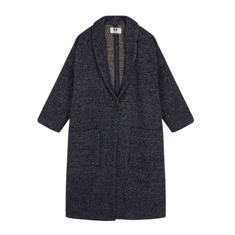 Il soprabito firmato Beatriz Furest si distingue per la silhouette doppio petto dal taglio lungo, impreziosita da un colletto ampio e reversati decisi. Il tessuto tecnico-look combina 40% acrilico, 30% poliestere, 25% lana e 5% altre fibre di supporto, assicurando struttura, resistenza e un’adeguata morbidezza. Il modello presenta chiusura con bottoni, tasche frontali funzionali e un dettaglio a nastro con bottone nella parte posteriore che aggiunge un tocco raffinato e moderno. Realizzato in Spagna, offre un’eleganza senza tempo, perfetta per l’outerwear di una donna che ricerca stile e versatilità: ideale per impreziosire look da cerimonia o momenti urbani sofisticati, diventa un capo-chiave per la transizione tra le stagioni.