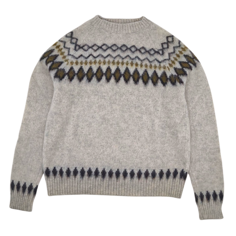 Una maglia in lana interamente realizzata a mano in Italia, che unisce un gusto minimal alla matericità artigianale. Il taglio è classico, con scollo a giro e maniche lunghe, ideale per stratificazioni o look essenziali. La trama mostra un punto lavorato fitto, che assicura ottima capacità termica e durabilità, pur restando piacevole al tatto anche a diretto contatto con la pelle. Bordi (polsi, collo e orlo) rifiniti a costine, per mantenere la forma anche dopo lavaggi e usura, conferiscono equilibrio e ordine al capo. Vestibilità leggermente comoda, che accarezza le forme senza stringere, rendendola perfetta sotto cappotti o giacche leggere oppure indossata da sola per valorizzare stili casual-chic. Equivalentemente versatile: si abbina bene a denim, gonne urbane o pantaloni sartoriali, conferendo un tocco raffinato ma autentico all’insieme. Un capo prezioso che valorizza il guardaroba con eleganza senza ostentazione, pensato per durare stagione dopo stagione.