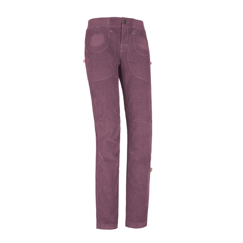 Pantaloni da donna pensati per arrampicata e uso urbano, realizzati in velluto di cotone biologico elasticizzato (98 % cotone, 2 % elastan) che unisce morbidezza e performance. Il taglio skinny valorizza la silhouette mantenendo libertà di movimento anche nei piegamenti grazie alla struttura stretch. Dotati di cintura regolabile in vita e fondo gamba adattabile, permettono una calzata su misura durante le attività tecniche. Ai lati sono presenti portaspazzola, utili durante la sessione su roccia, mentre il retro vanta un ricamo discreto e tasche dallo stile iconico. Il tessuto è traspirante e resistente, pensato per durare nel tempo pur restando comodo anche all’uso quotidiano. Ideali per chi cerca un capo funzionale ma ricercato, questi pantaloni combinano design, comfort e praticità Made in Italy per affrontare vie e città con stile.