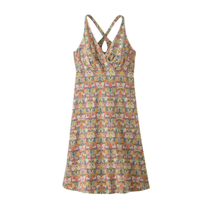 Il vestito Patagonia Amber Dawn è pensato per offrire comfort, leggerezza e stile nelle giornate più calde, unendo un design femminile a una struttura pratica per l’uso quotidiano e il tempo libero. Il taglio con scollo a V e linea fluida valorizza la silhouette, mentre la lunghezza al ginocchio lo rende versatile e facile da indossare in ogni occasione.