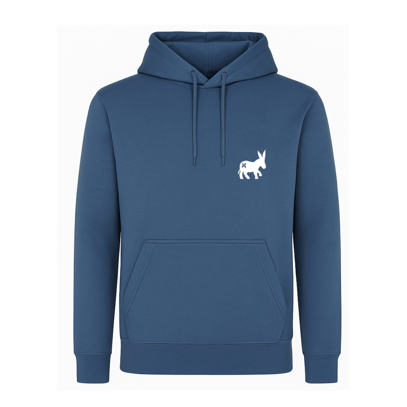 Hoodie classiche con tasca della mano sul davanti, logo Donkey con patch anteriore e posteriore "Sensa Cunisiun declina ogni responsabilità per qualsiasi atto di stupidità indotta dall'uso di questo capo. Un uso improprio di questo capo può portare a stati permanenti di immaturità e goliardia. Essere lavato la neve almeno una volta al mese. "